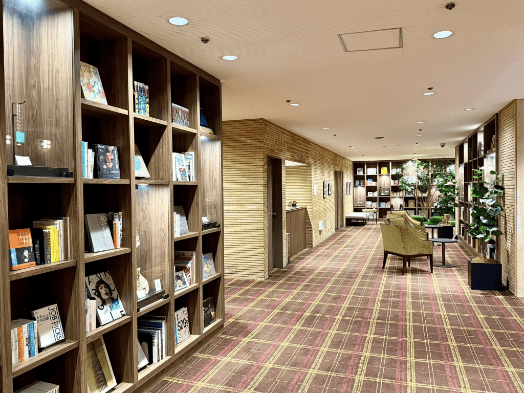 酒店定位為「圖書旅宿」風格,館內常態約有1500本藏書,並由蔦屋書店定期更換新書,將閱讀與旅宿體驗融合,營造出既有都市便利又有靜謐逸趣的氛圍。