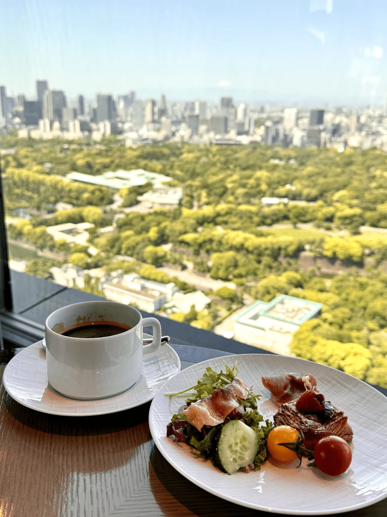 大堂的咖啡區,也是欣賞窗外的皇居綠景