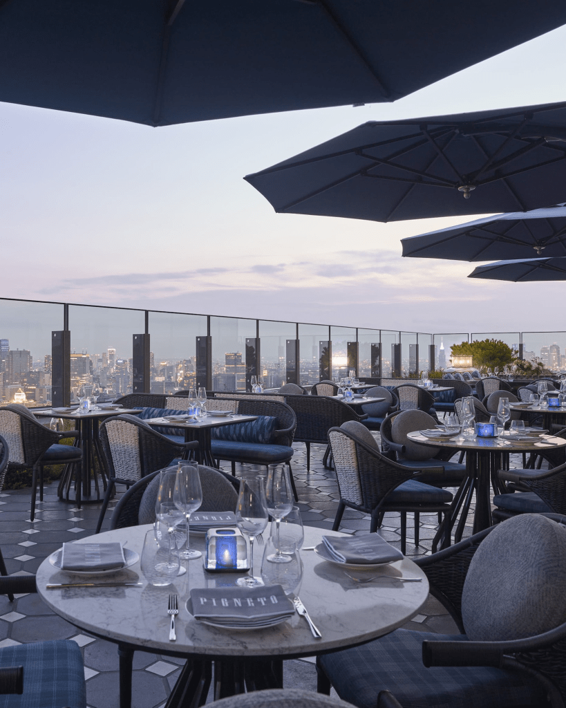 義式餐廳用餐區,擁有極佳的景觀,可欣賞皇居的大片綠意,讓用餐時刻成為沉靜觀景的體驗