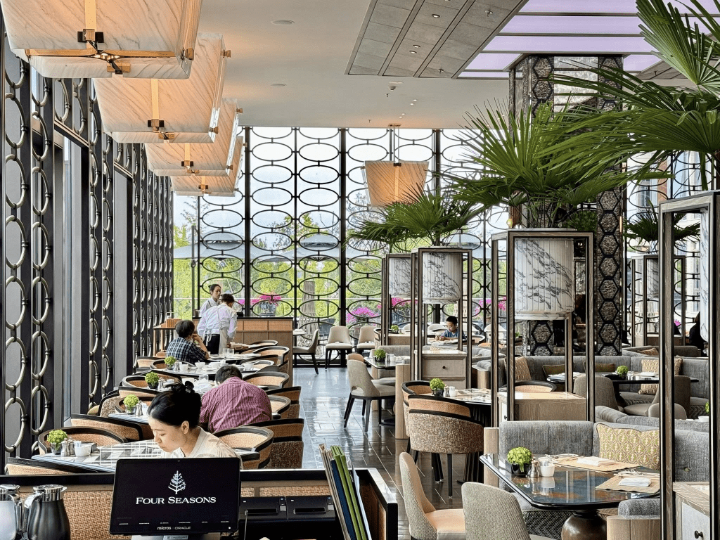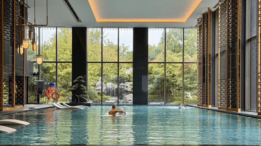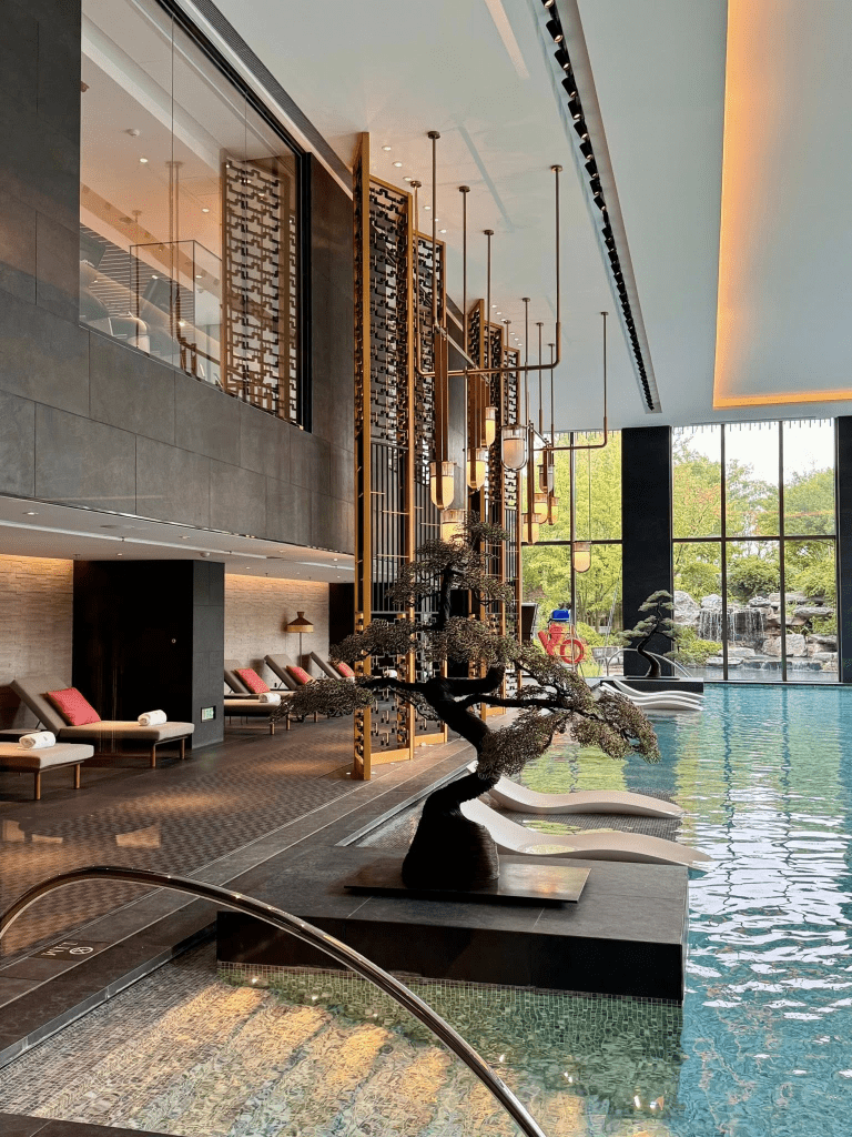 2024年開幕的蘇州四季酒店坐落於金雞湖上一座面積9公頃的私人度假島嶼,是市內僅有的「一島一飯店」。酒店的室內設計由新加坡設計事務所Avalon Collective操刀。受中國古典園林造園之法的啟發,蘇州四季酒店完美地將蘇州韻味透過中式建築線條作為設計元素來體現。