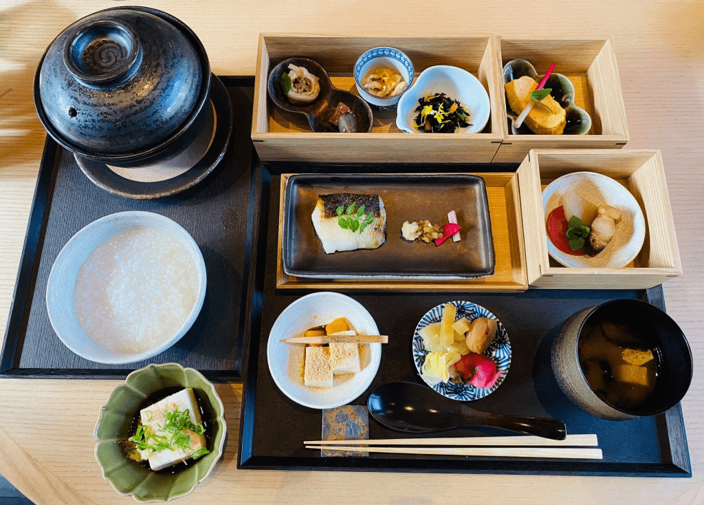 值得分享的是,熱粥的碗採用雙層加蓋,讓白粥都維持燙口的熱度,這種細節的要求,多數五星級酒店都做不到,還有京都湯豆腐也是專屬手推車桌邊服務,現舀的,燙燙的吃,只能說「細節就是價值」