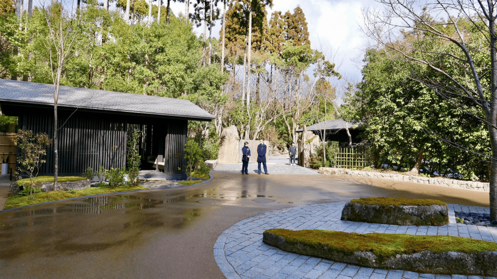入口兩側矗立的大原石作為迎賓排場,也是京都安縵的特色。
