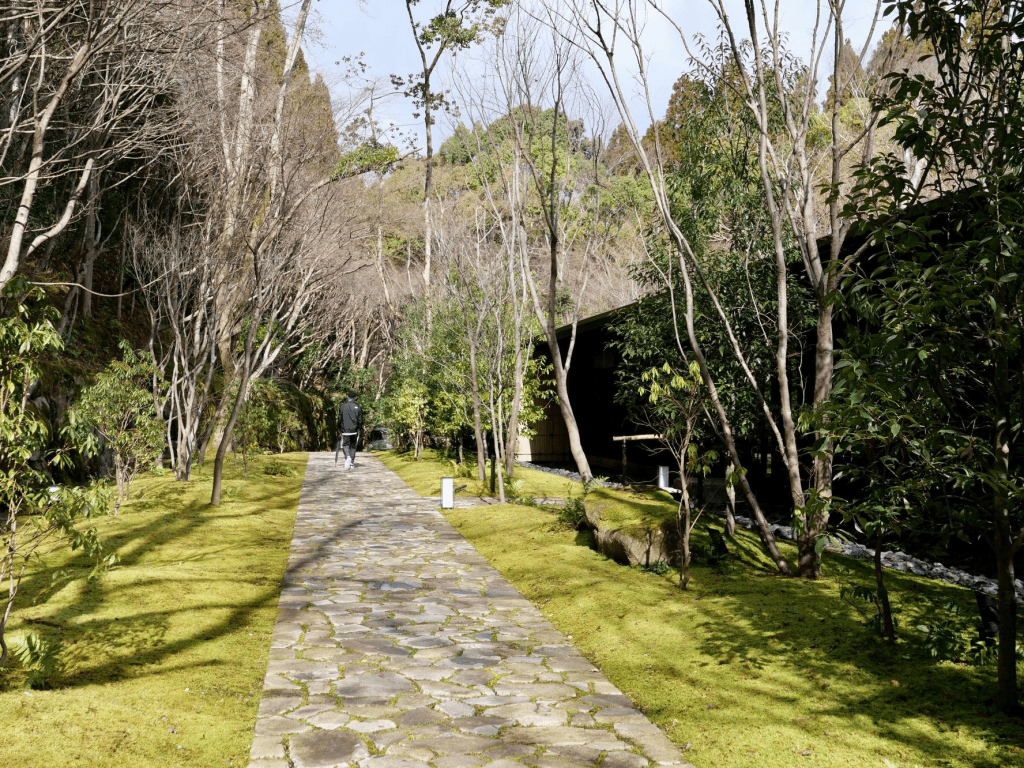 庭園步道兩側都是長滿青苔的草皮,在庭園散步享受特有的寧靜,沒有旁人的干擾,一晚將近十萬台幣的住宿費換得的,是最多的寧靜,應該說是獨享吧。
