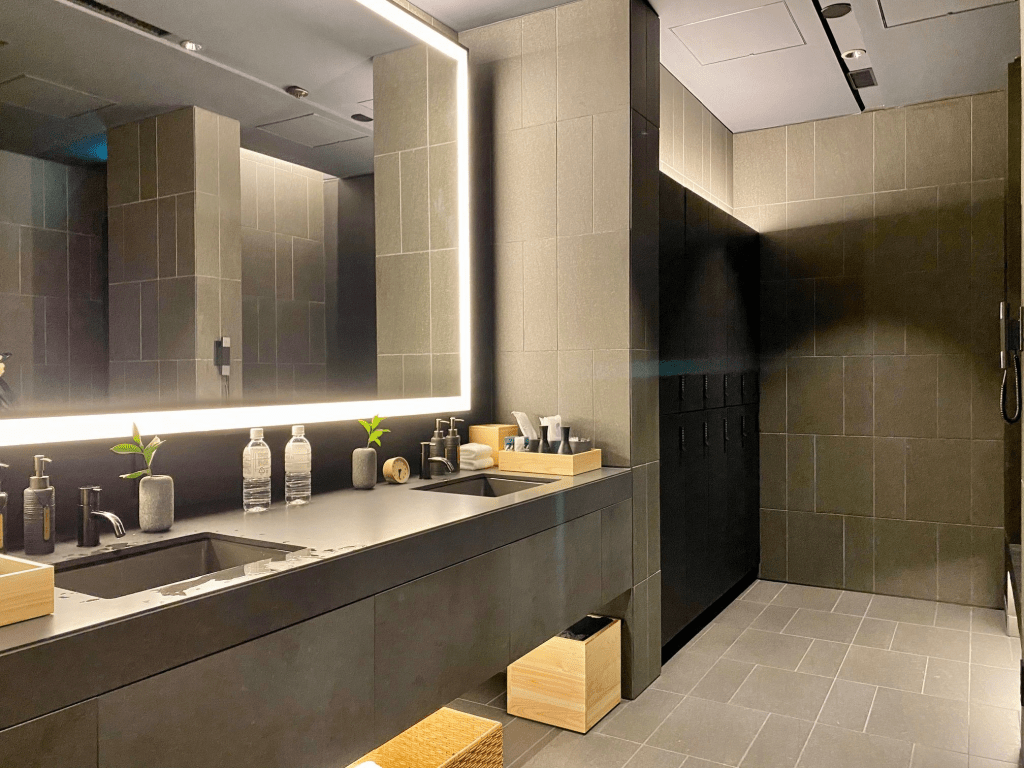 只有8個LOCKER的更衣室,但梳洗配備相當齊全,AMAN專用的沐浴保養品及Marvis牙膏牙刷,備品區不忘插上青翠枝葉,呼應整個飯店的自然氣息,細微處更見美學用心