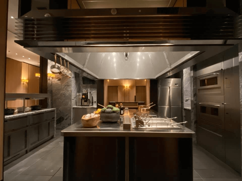 位於酒店地下室的宴會廳廚房,採開放式設計,當租用宴會廳時,廚師即到此烹調服務,廚房看起來很奢華