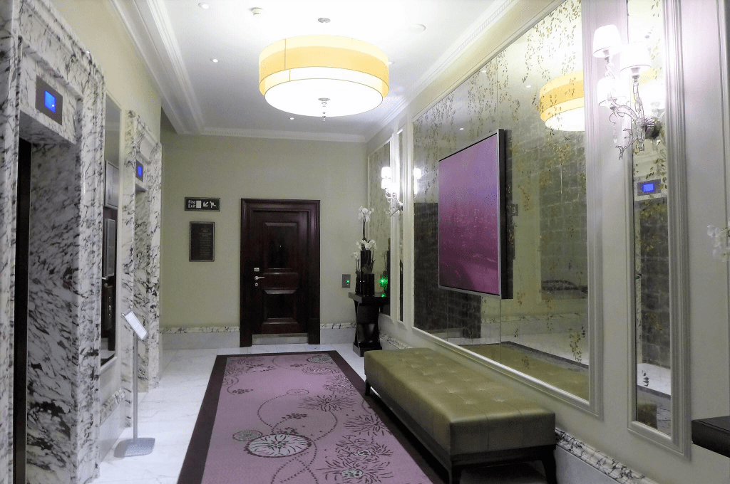 住房樓層的電梯梯廳,由於之前酒店重新裝修過,所以具有時尚的配色