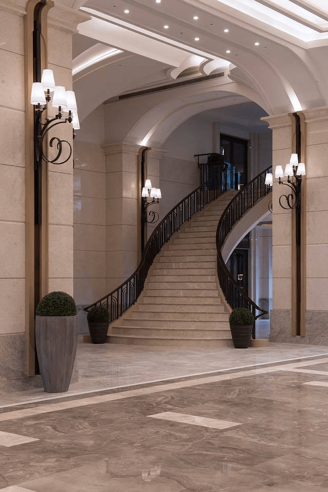 對稱迴旋梯,是後側大廳的空間主角,「對稱」就是永恆的經典