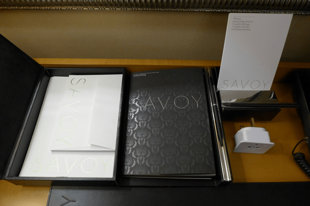 因為頒獎活動的關係,我到達酒店的時間為早上十點半,但酒店已將我的房間準備好,完成入住手續後由親切的管家帶領到住房,此時電視上更已經show出歡迎名牌。Savoy的房間面積不大,但標準房一晚房價要價台幣三萬多,當體驗過酒店著名的英式管家服務及米其林餐飲後,絕對讓人認同其價值。